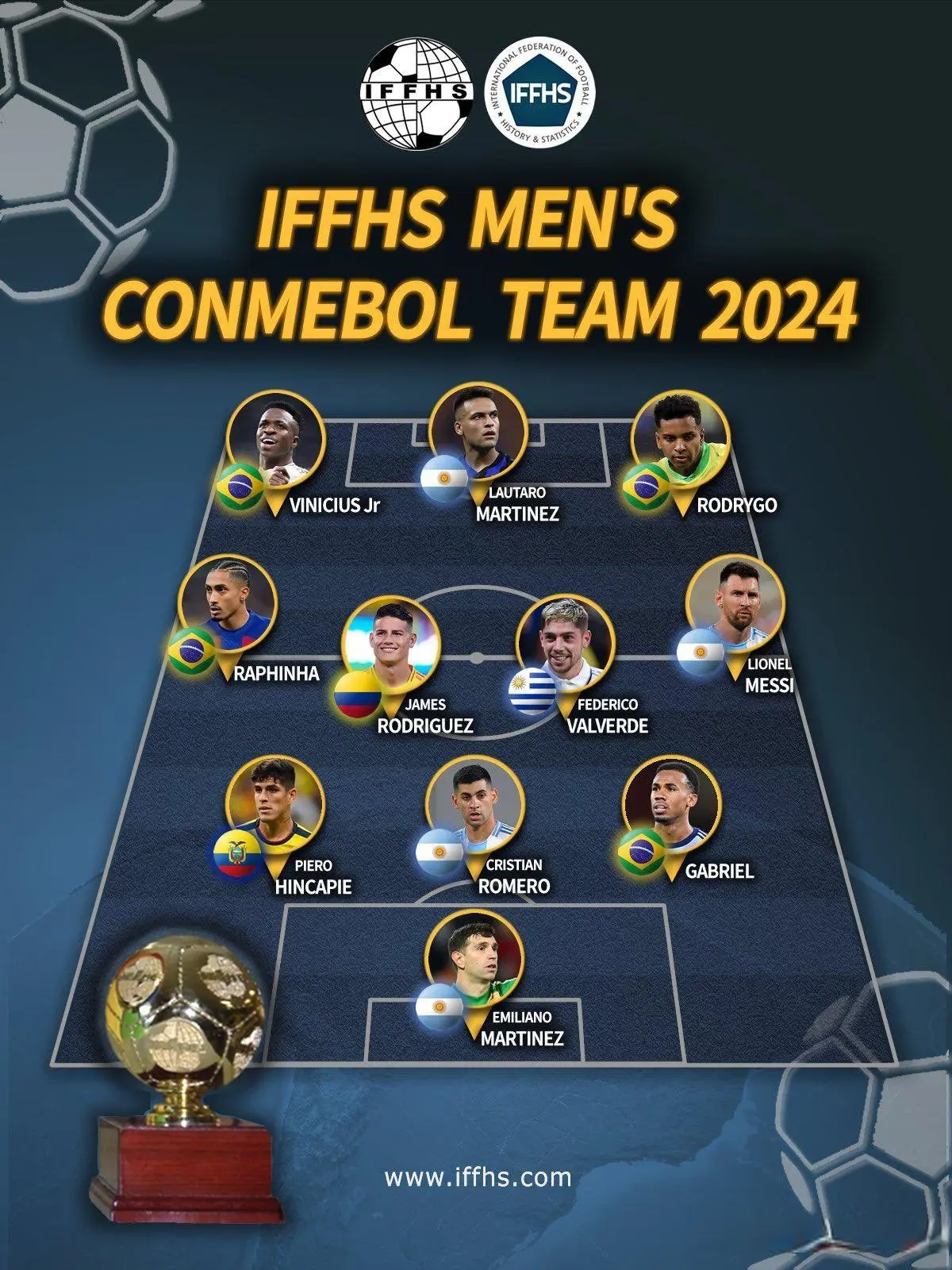 1月23日。著名机构IFFHS公布2024年南美最佳阵容:梅西领衔。